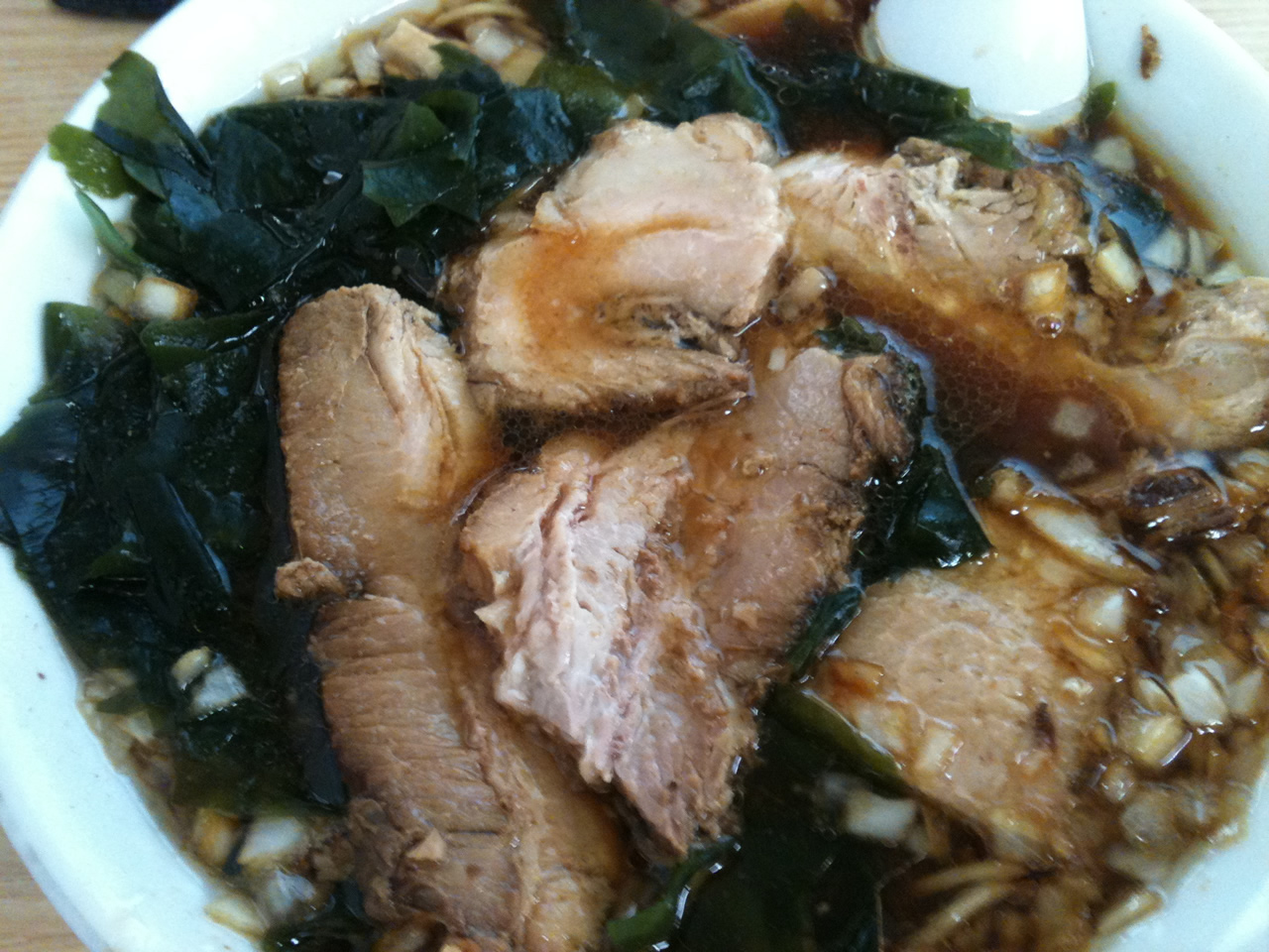 ここのお約束はわかめチャーシューめんに餃子(にんにくがめちゃ効いててうまいっす。。。)